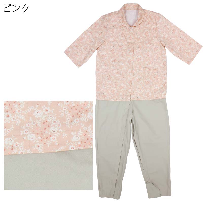 介護用パジャマ ハートフルつなぎパジャマ 布03 布03ピンク M ハートフルウェアフジイ