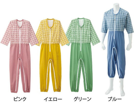 介護用 パジャマ フドーねまき 1型 スリーシーズン 青 黄色 グリーン ピンク【竹虎】 【105412 105413 105414 105415 105422 105423 105424 105425 105352 105353 105354 105355 105402 105403 105404 105405】【つなぎ 続き服】【ねまき 寝巻き 介護衣料品】