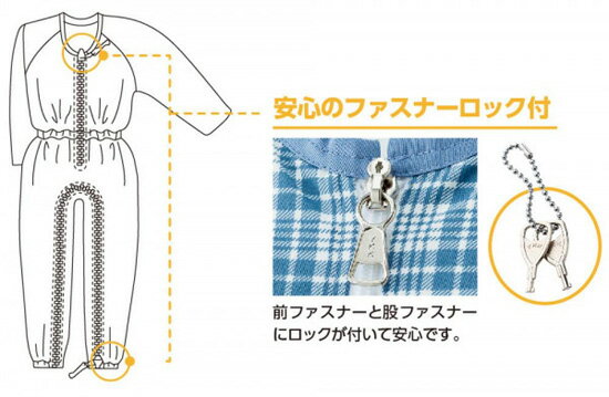 介護パジャマ ■送料無料・代引料無料■【介護用つなぎパジャマ 38705】 介護用寝巻き 介護寝巻き 男女兼用 メンズ レディース 鍵付き ファスナー ジッパー